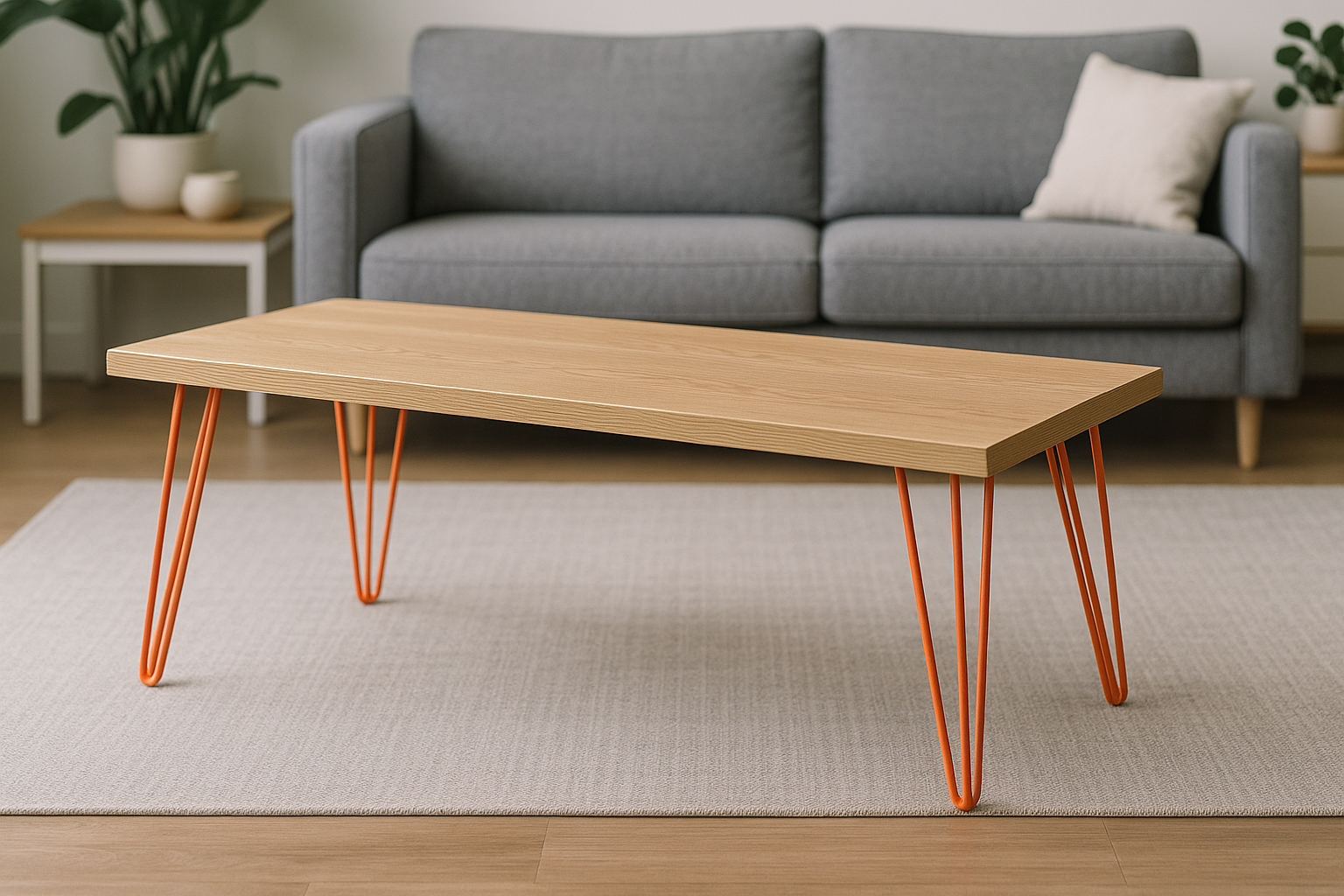 Hairpin legs are available in black, white, or raw steel. Black is a versatile choice that creates a striking contrast with oak. White offers a softer, lighter look that suits modern or Scandinavian living rooms. Raw steel gives an industrial edge but must be sealed to prevent rust. If you want a custom look, you can paint the legs yourself. Sand them first for adhesion, then use spray paint for a smooth finish and add a protective clear coat.