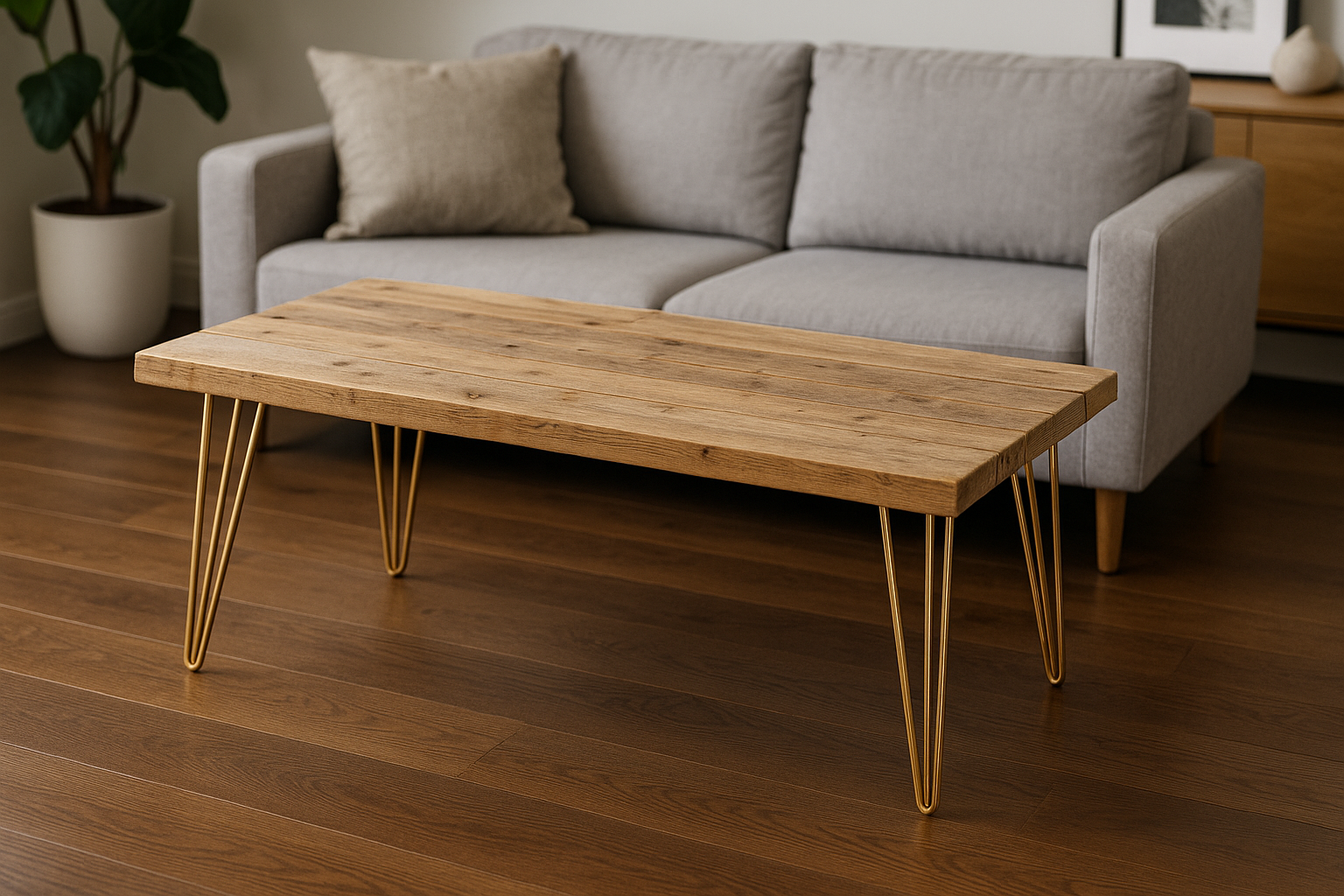A coffee table with a solid oak top and hairpin legs is a perfect blend of strength, elegance, and timeless design. The oak top provides natural warmth and durability, while the slim legs keep the look light and stylish. With careful preparation — choosing the right thickness, cutting accurately, sanding, and applying a protective finish — you can create a coffee table that looks professional, feels sturdy, and withstands the wear and tear of daily life.