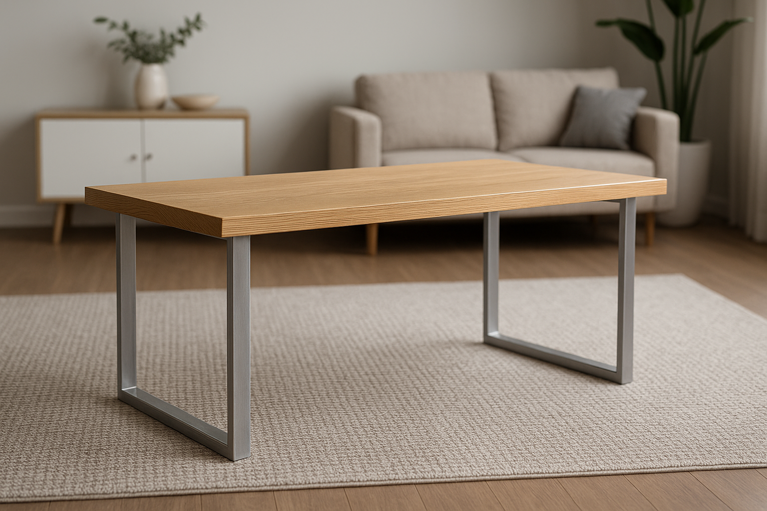 This style is particularly at home in Scandinavian-inspired living rooms, where pale woods and simplicity are key. It also works in modern apartments, where space is limited and furniture must feel light. In creative studios or lofts, plywood paired with steel legs resonates with the industrial-yet-refined aesthetic. It’s a coffee table that doesn’t shout for attention, but instead complements its surroundings gracefully.