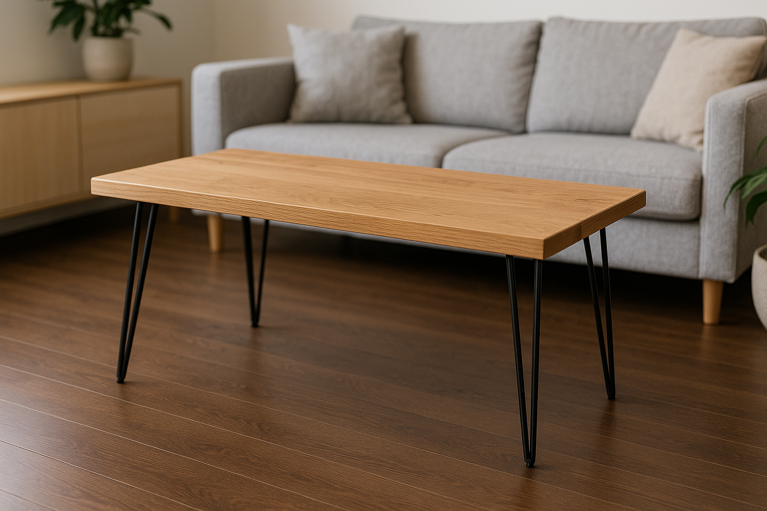 A coffee table is one of the most versatile pieces of furniture in the living room. It anchors the space, provides a surface for drinks and books, and often doubles as a spot to rest your feet. Building your own coffee table allows you to choose materials that fit your style, while giving you the satisfaction of creating something by hand. One timeless and modern combination is pairing a solid oak top with hairpin legs. The result is a table that is both strong and stylish, balancing natural warmth with slim, elegant design.